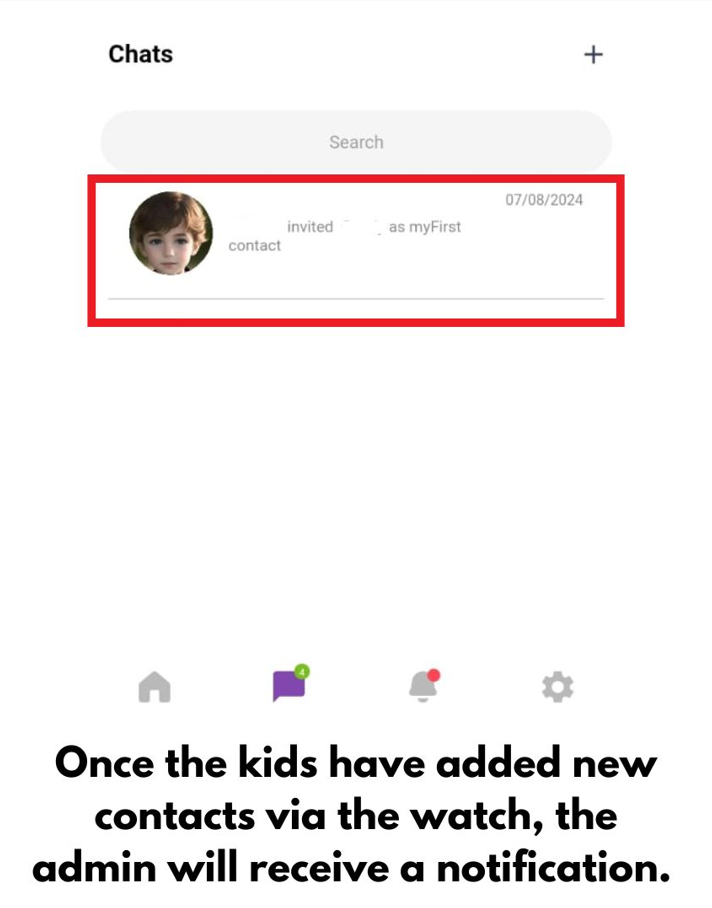 **Admin will receive a notification at the chat once their kids add new friends/ contacts via the myFirst Fone R1c.