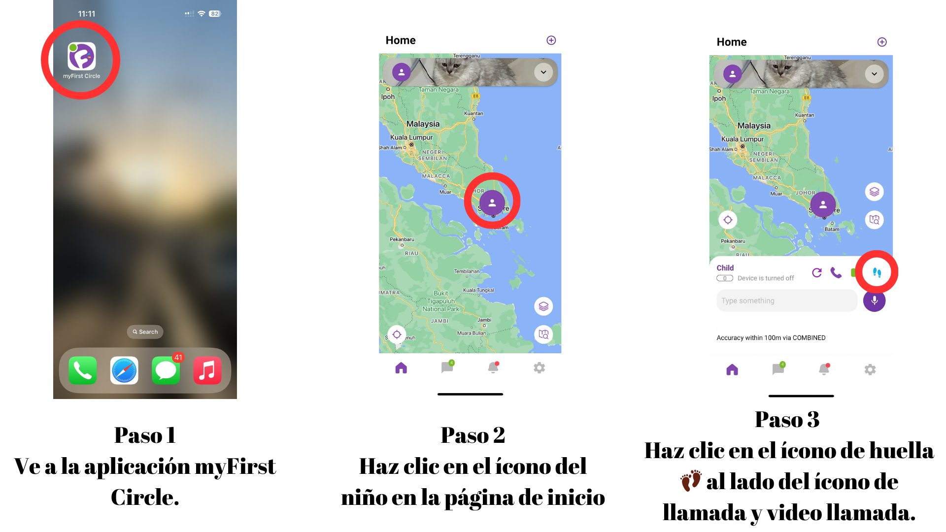 - Haz clic en el ícono de huella 👣 al lado del ícono de llamada y video llamada.