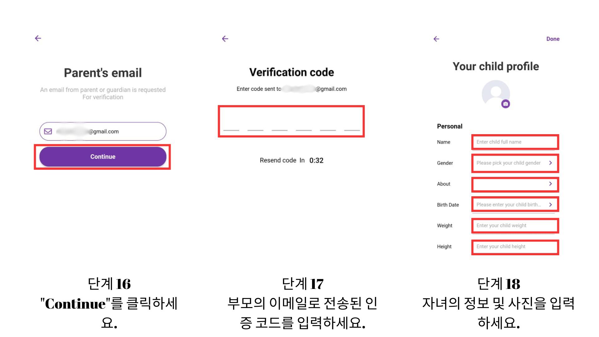 - ๋ถ๋ชจ์ ํ์ฑ ์ด๋ฉ์ผ ์ฃผ์๋ฅผ ์ ๋ ฅํ์ธ์.