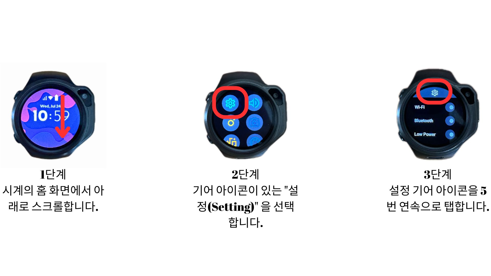 - 설정 기어 아이콘을 5번 연속으로 탭하세요.