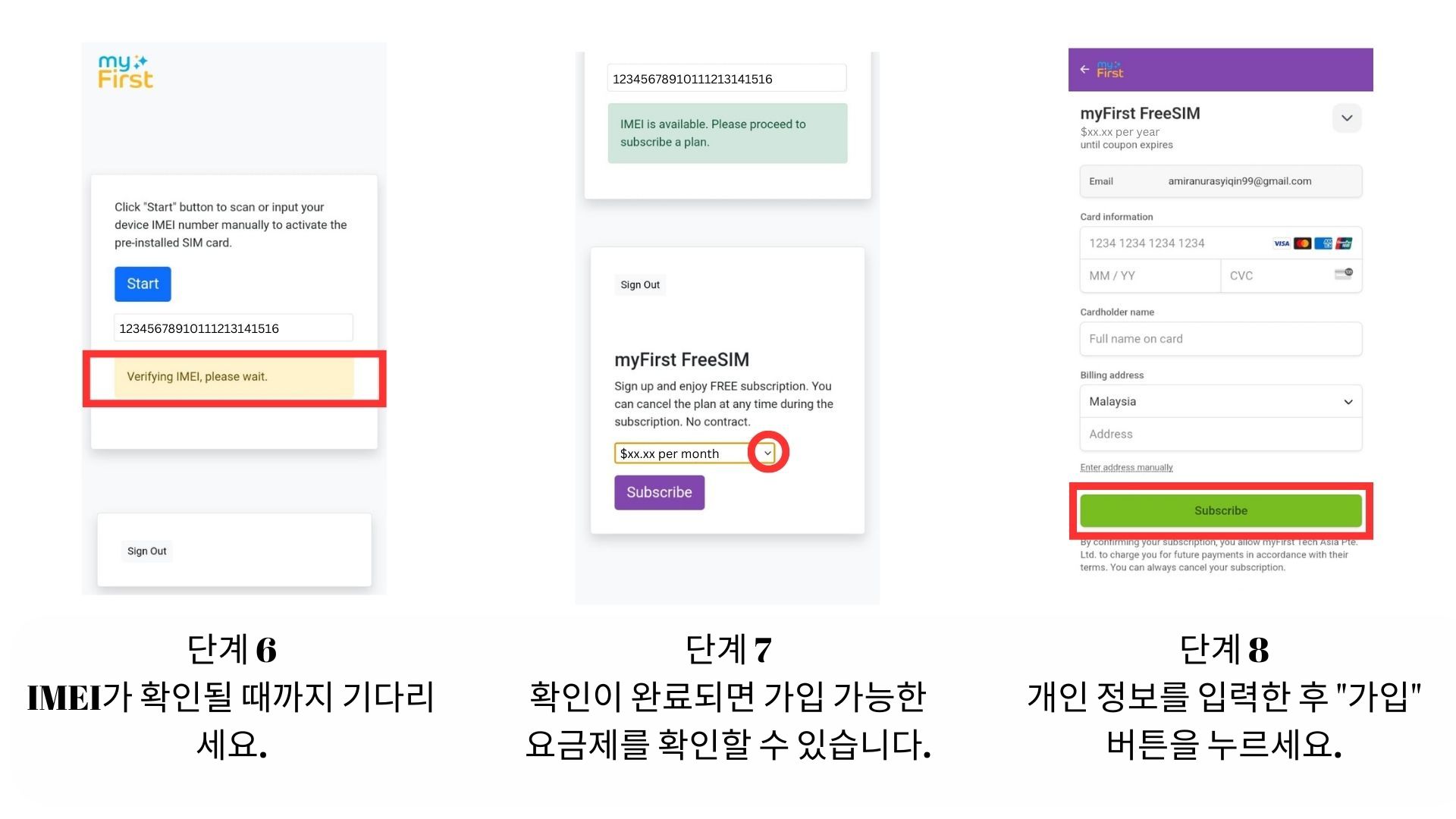 - 정보를 입력한 후 "구독"을 클릭하세요.