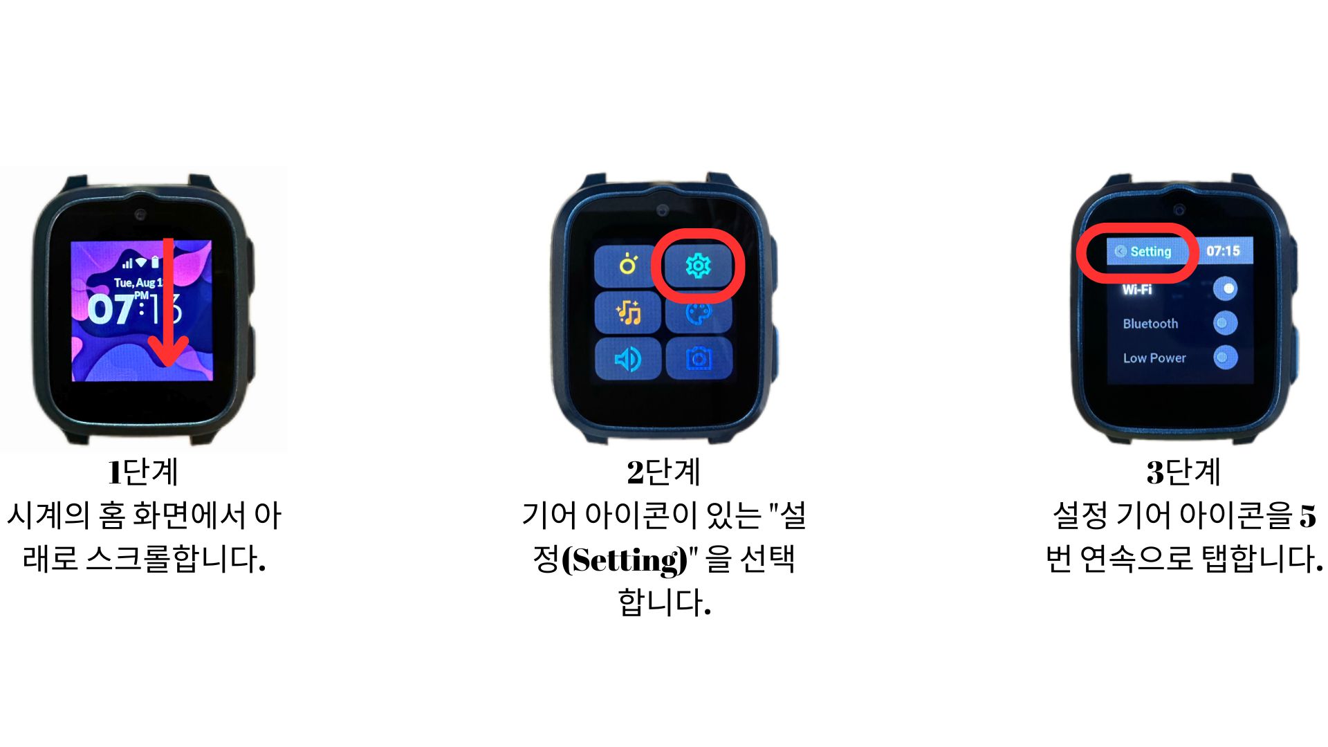 - 설정 기어 아이콘을 5번 연속으로 탭하세요.