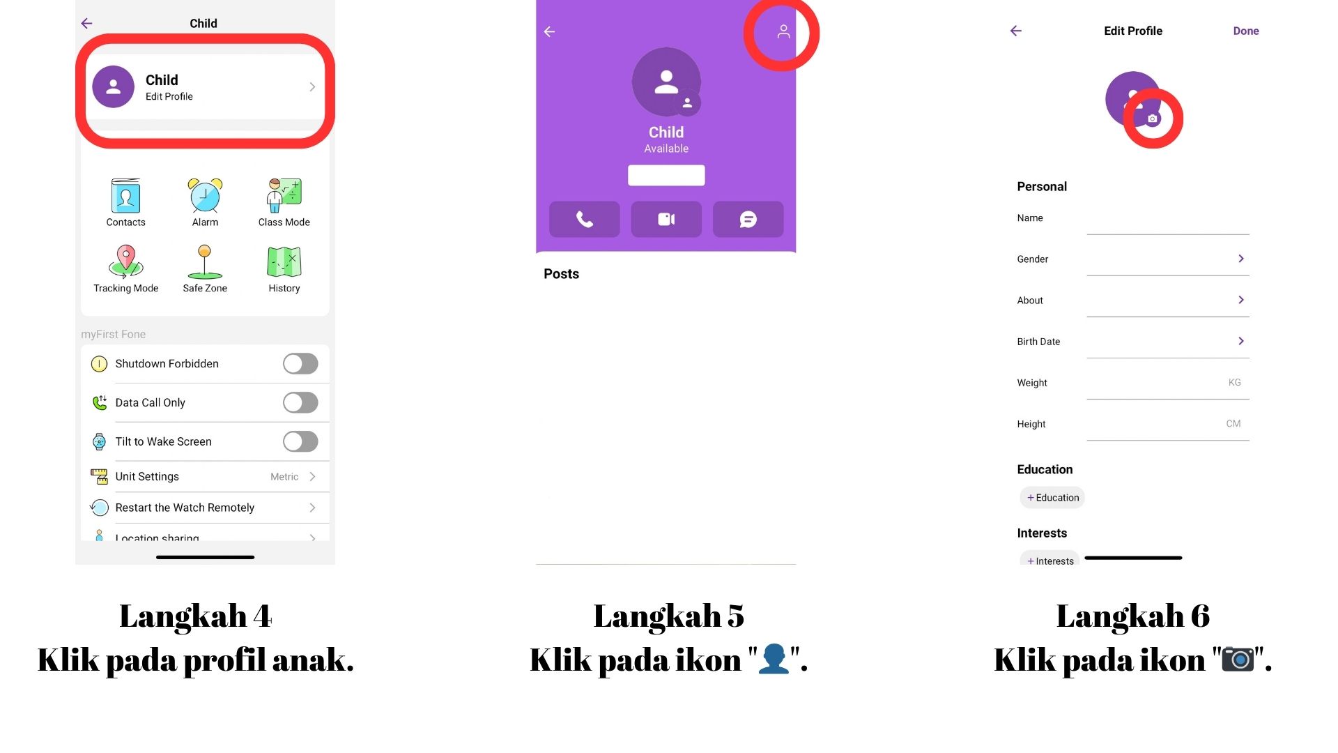 - Klik pada profil anak.