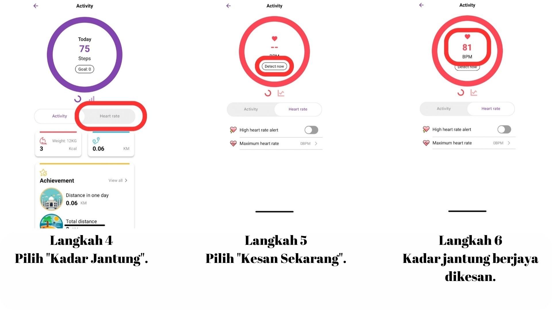 Untuk memeriksa kadar jantung anak anda menggunakan aplikasi myFirst Circle, ikuti langkah berikut: