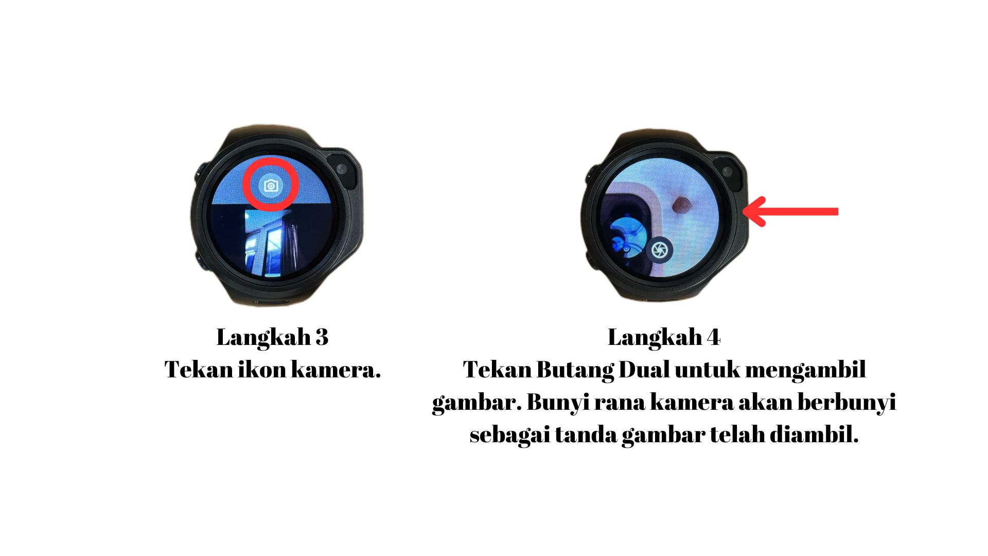 Tekan Butang Dual untuk mengambil gambar. Bunyi rana kamera akan berbunyi sebagai tanda gambar telah diambil.