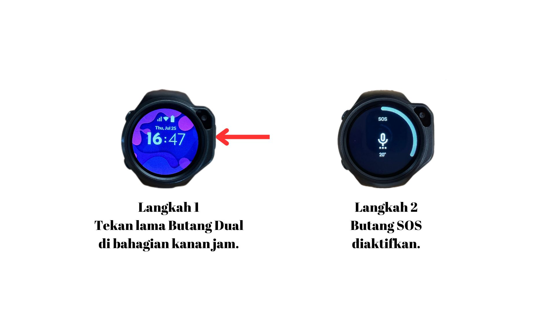 Tekan lama Butang Dual di bahagian kanan jam.