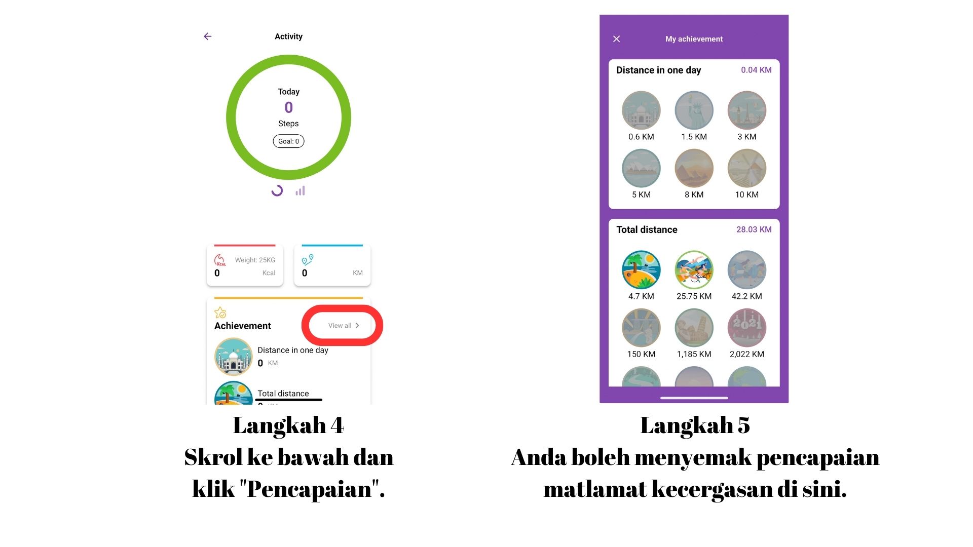 Anda boleh menyemak pencapaian matlamat kecergasan di sini.