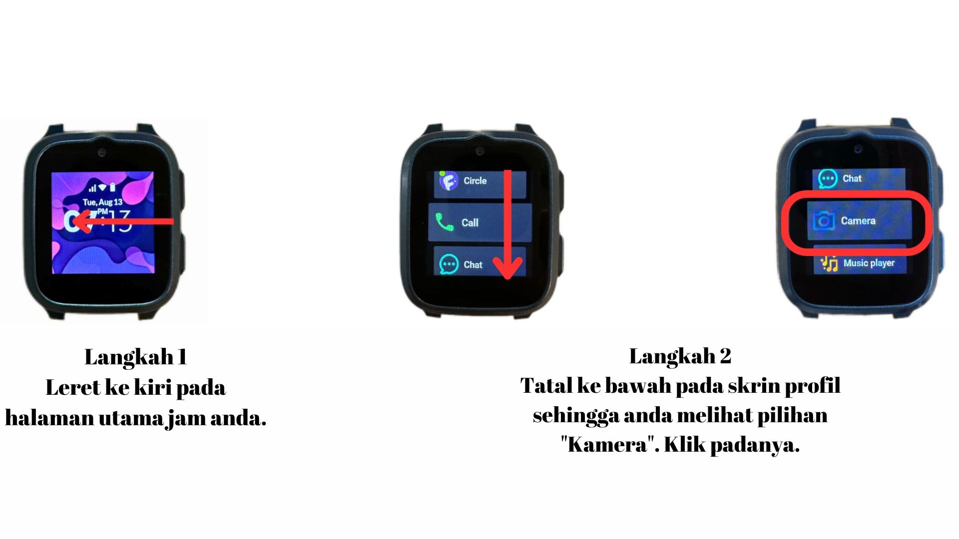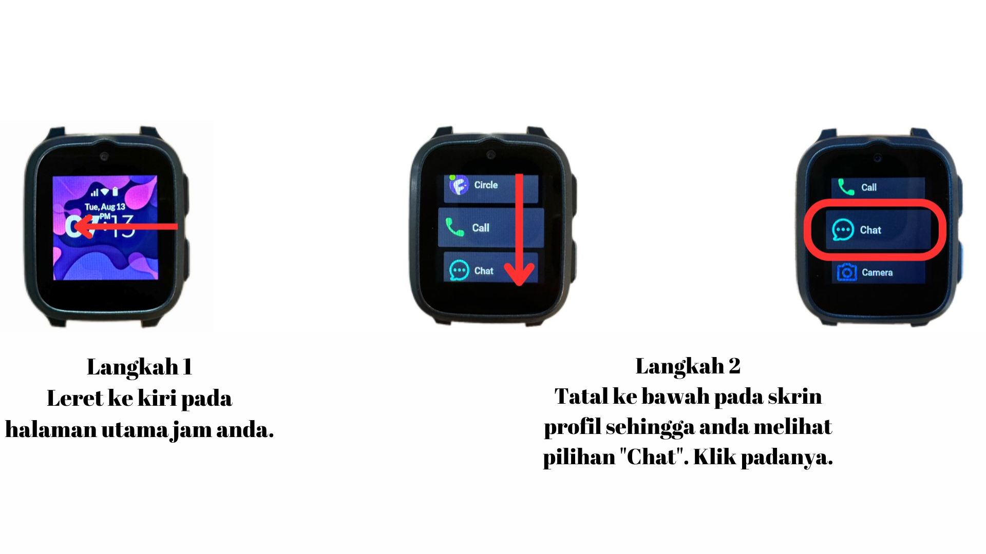 - Leret ke kiri pada halaman utama jam tangan.