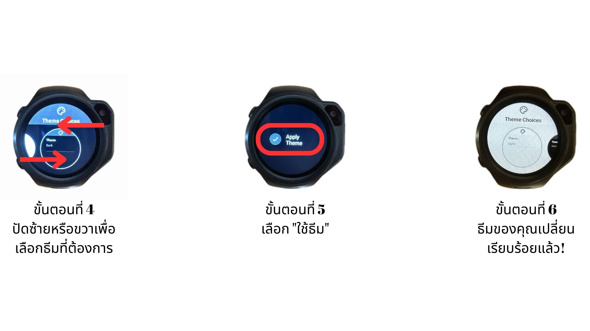 - ปัดซ้ายหรือขวาเพื่อเลือกธีมที่ต้องการ