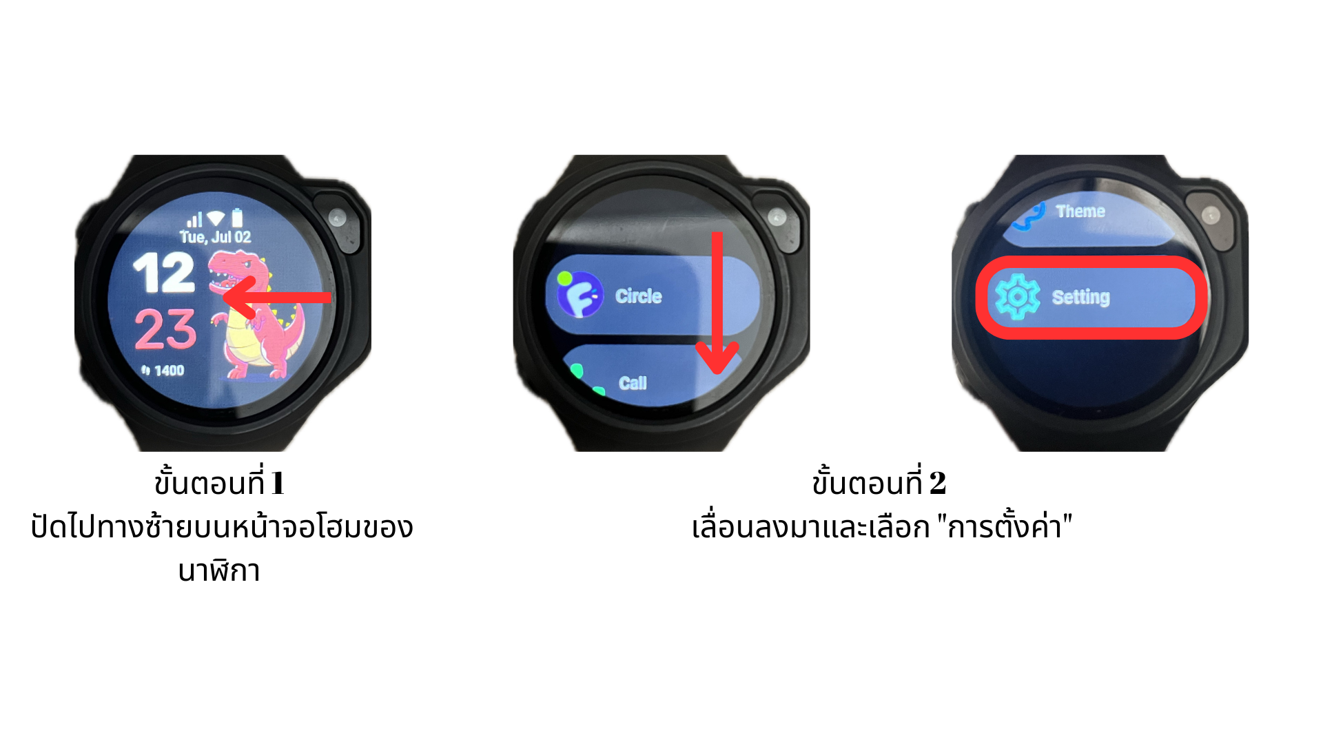 - ปัดไปทางซ้ายบนหน้าจอโฮมของนาฬิกา