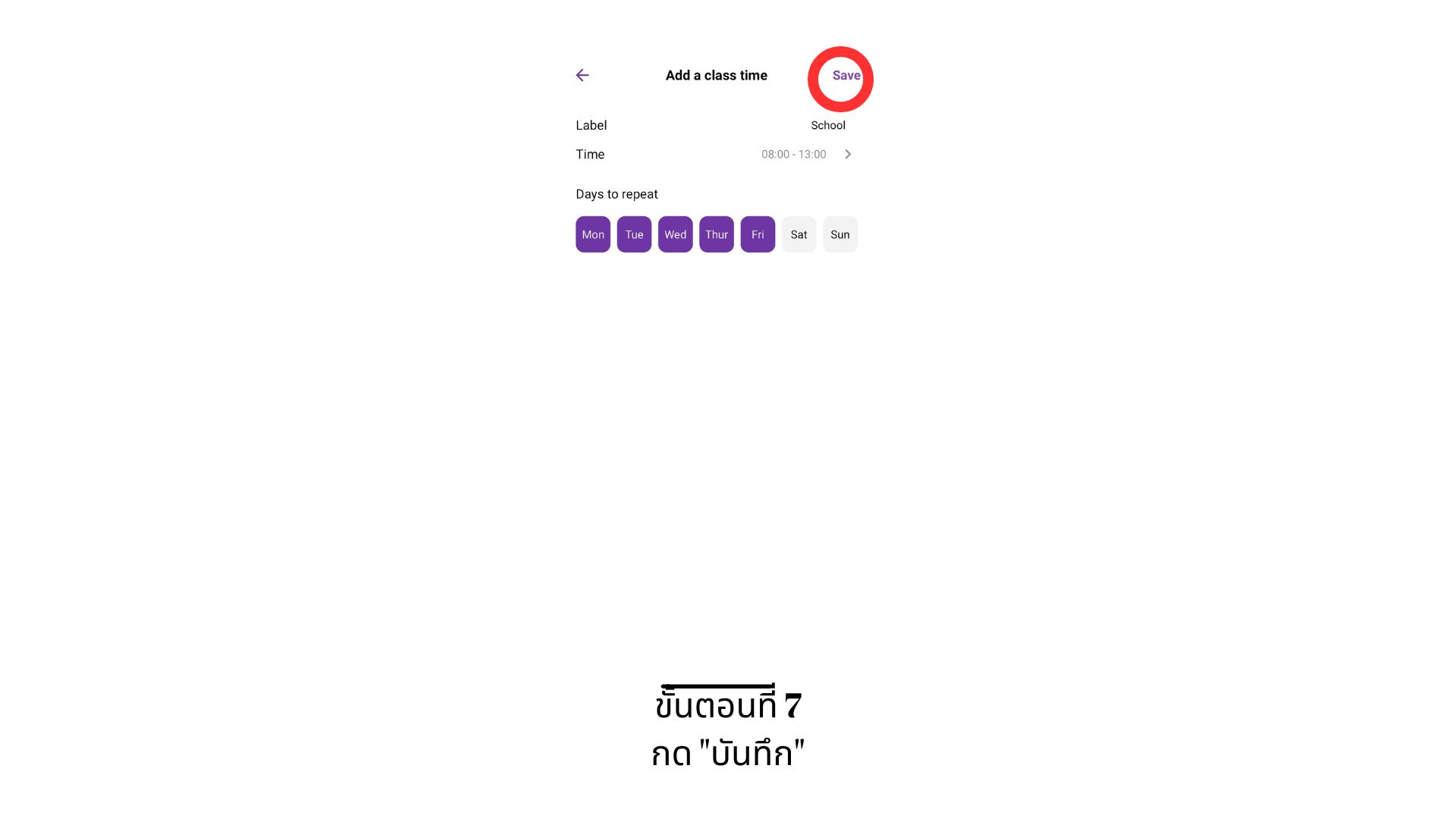 - กรอกชื่อโหมดเรียน กำหนดเวลาและวันที่ต้องการให้ทำซ้ำ