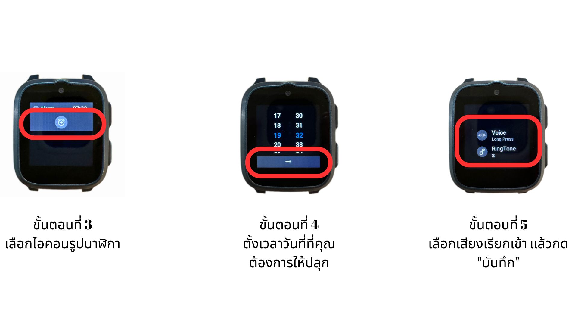 - ตั้งเวลาวันที่ที่คุณต้องการให้ปลุก