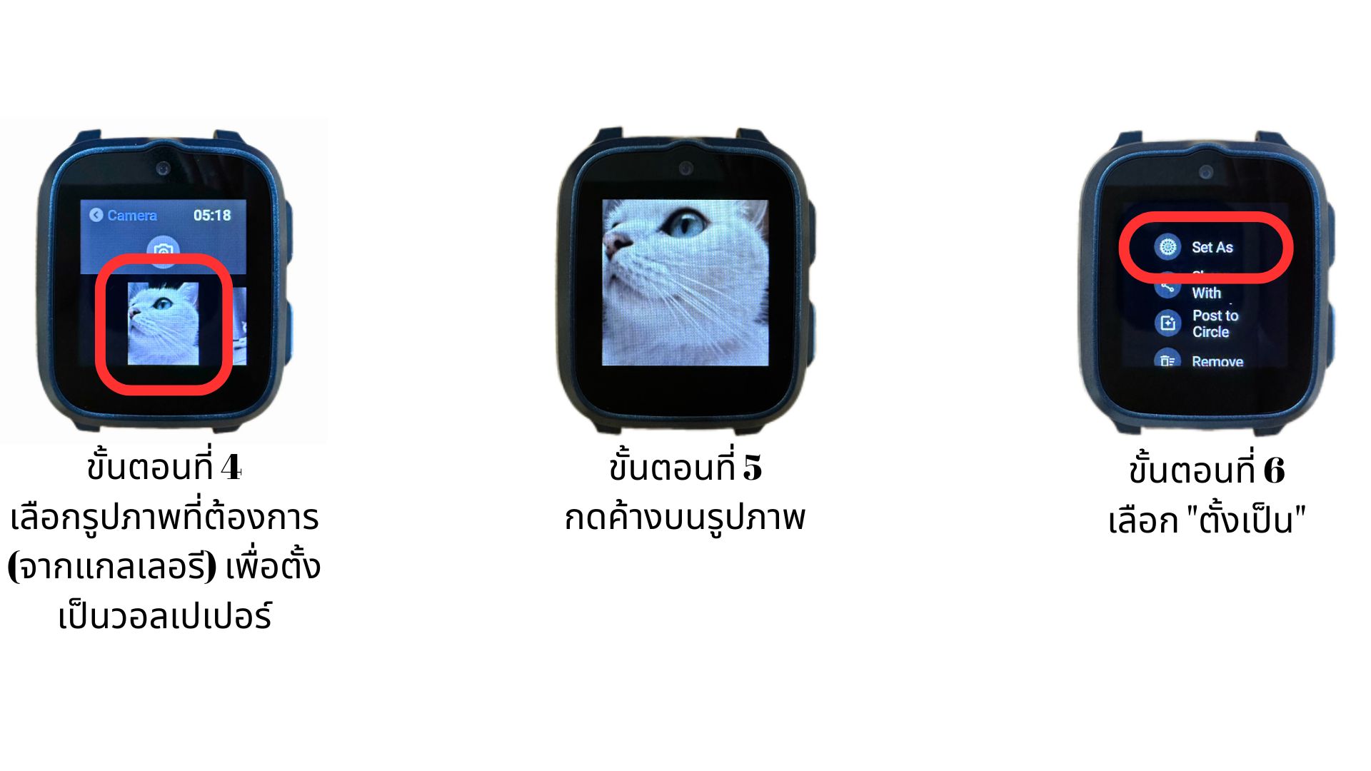 ฉันจะเปลี่ยนวอลเปเปอร์ของนาฬิกา myFirst Fone S3 ได้อย่างไร?