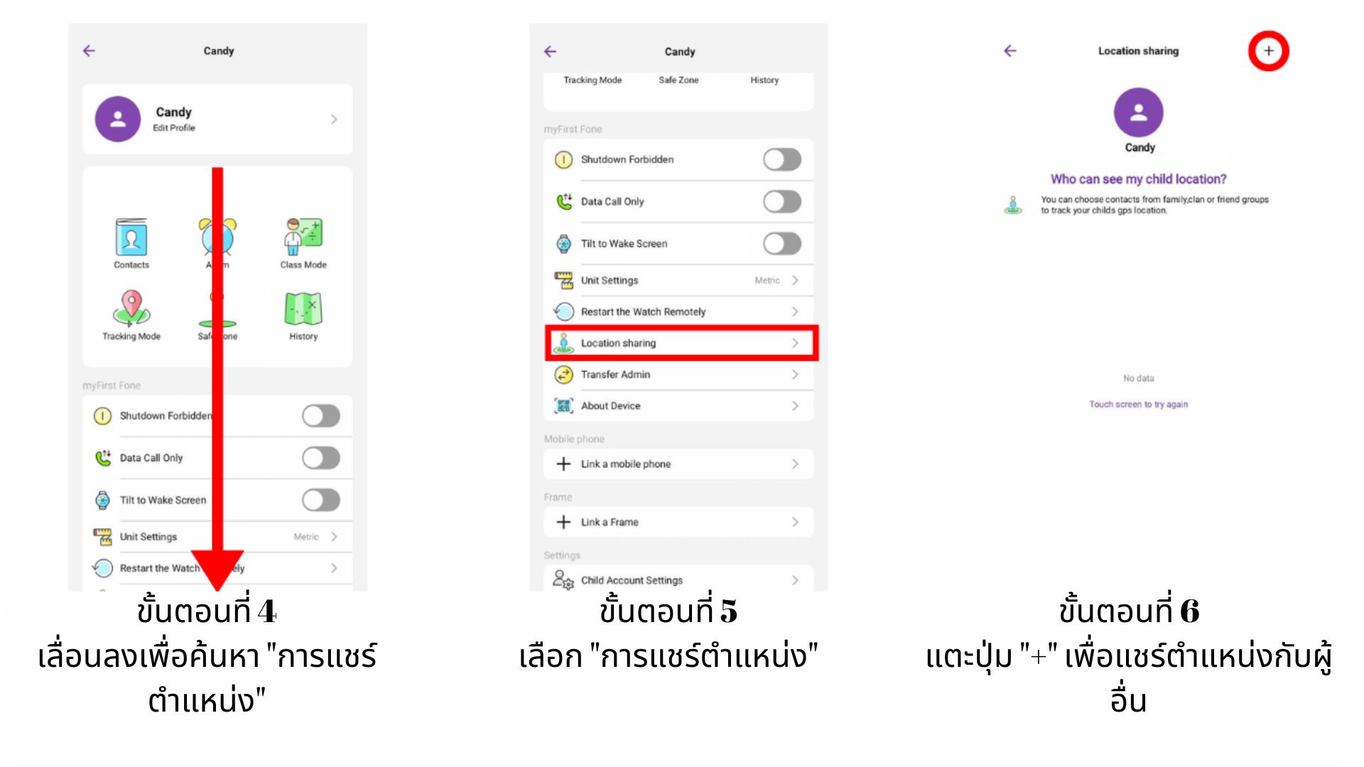 คุณสามารถเปิดใช้การแชร์ตำแหน่งสำหรับสมาชิกในครอบครัวผ่านแอป myFirst Circle