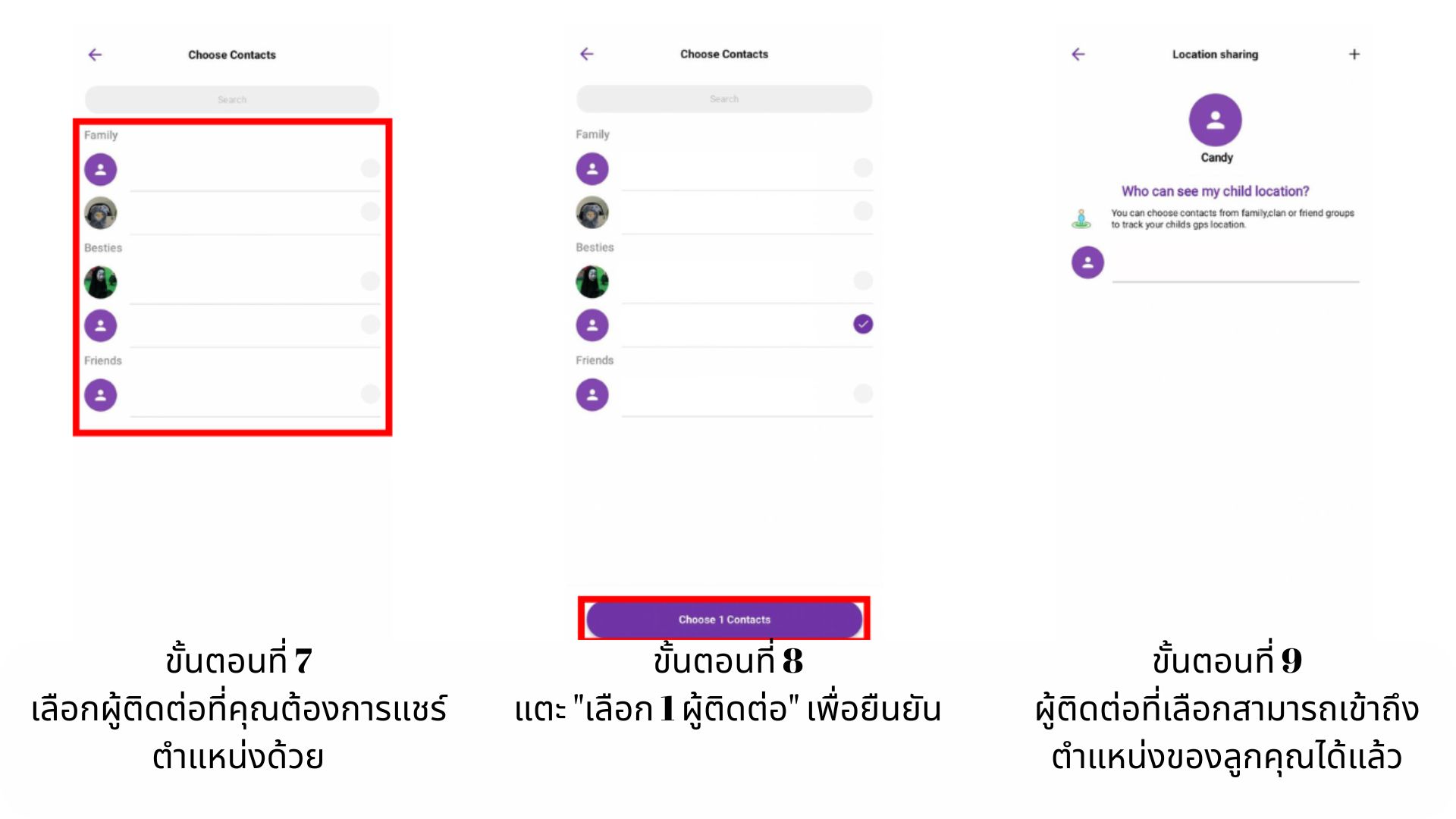 - ผู้ติดต่อที่เลือกสามารถเข้าถึงตำแหน่งของลูกคุณได้แล้ว