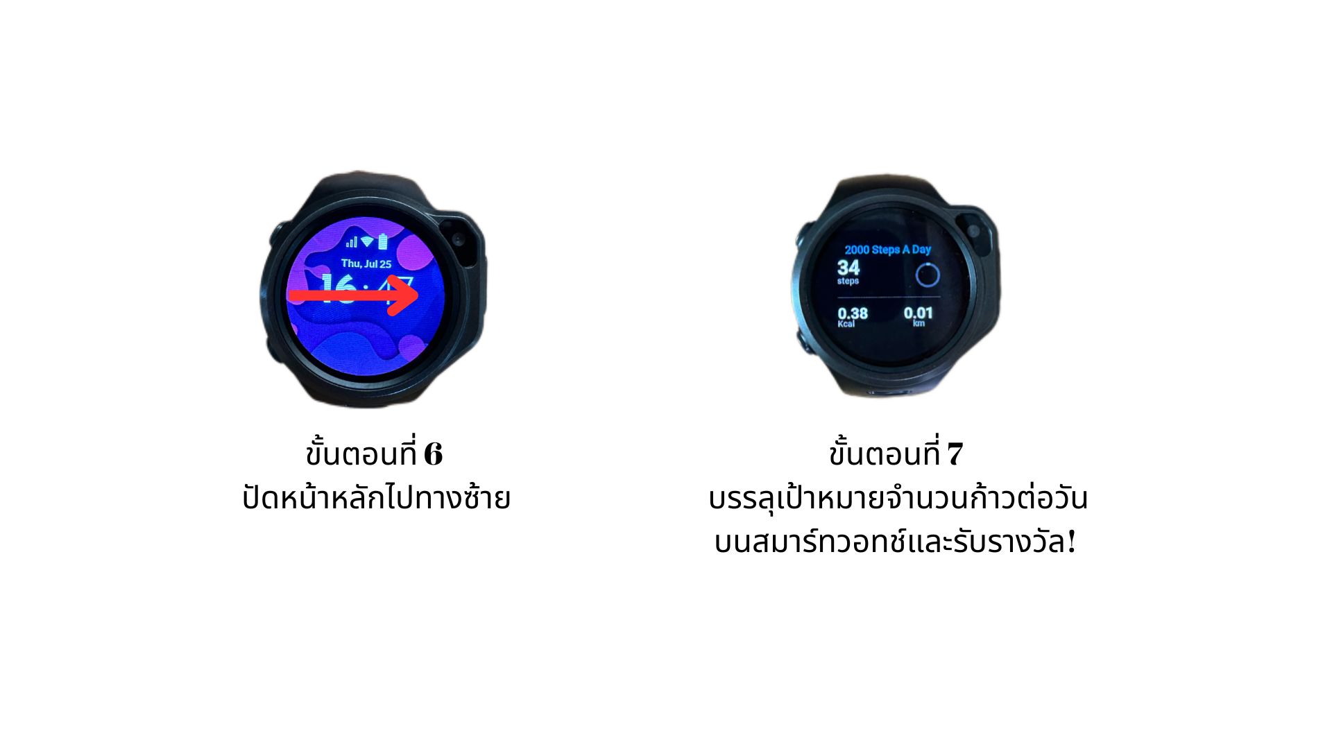 - บรรลุเป้าหมายจำนวนก้าวต่อวันบนสมาร์ทวอทช์และรับรางวัล!
