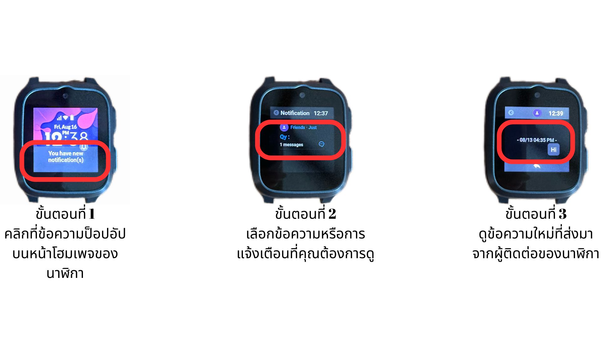 - ดูข้อความใหม่ที่ส่งมาจากผู้ติดต่อของนาฬิกา