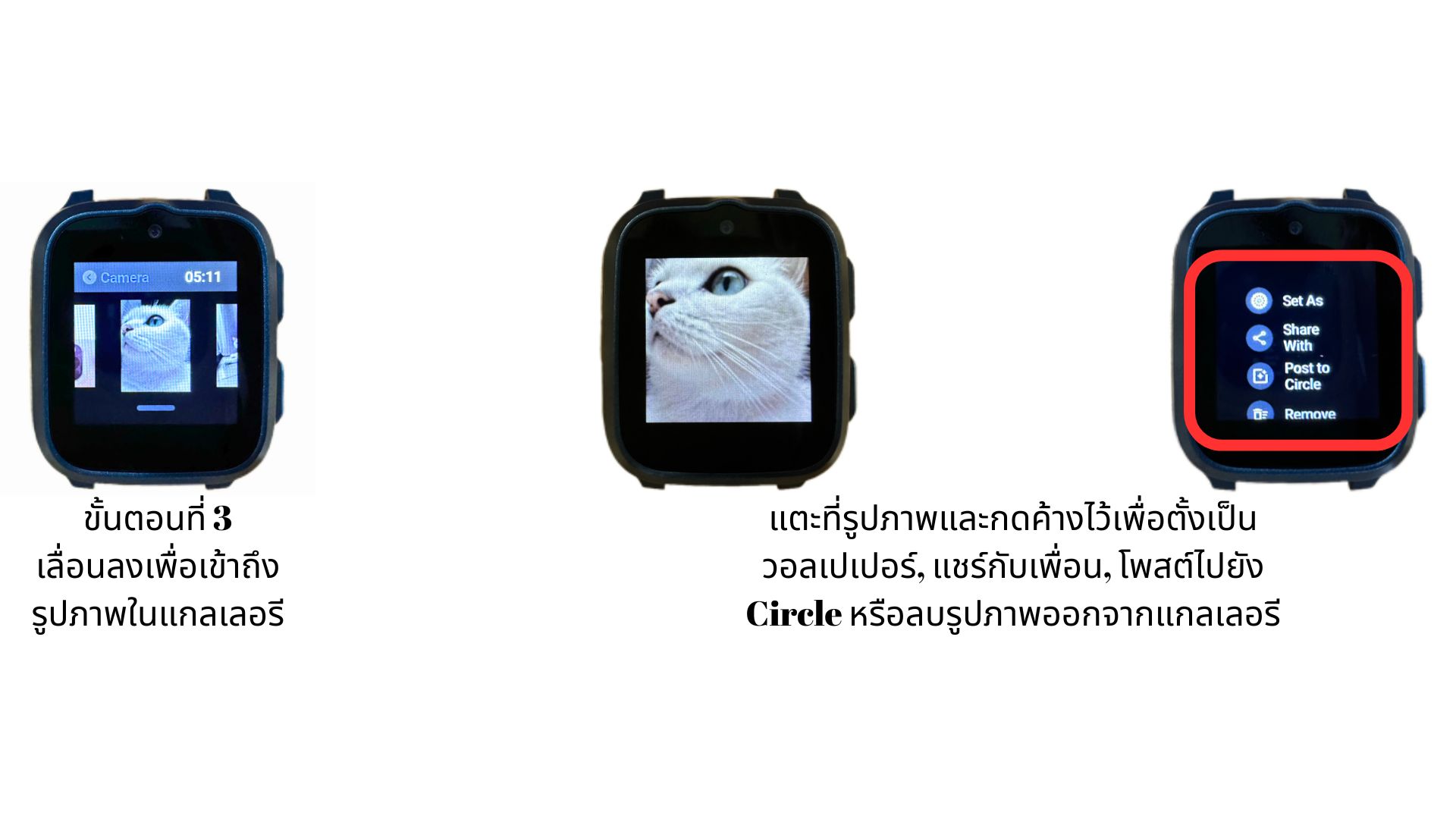 - แตะที่รูปภาพและกดค้างไว้เพื่อตั้งเป็นวอลเปเปอร์, แชร์กับเพื่อน, โพสต์ไปยัง Circle หรือลบรูปภาพออกจากแกลเลอรี
