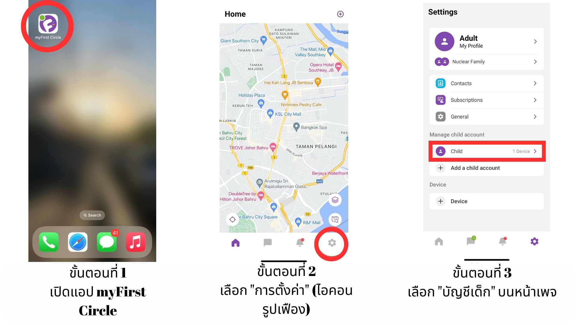 คุณสามารถตั้งค่าโซนปลอดภัยผ่านแอป myFirst Circle โดยทำตามขั้นตอนด้านล่างนี้: