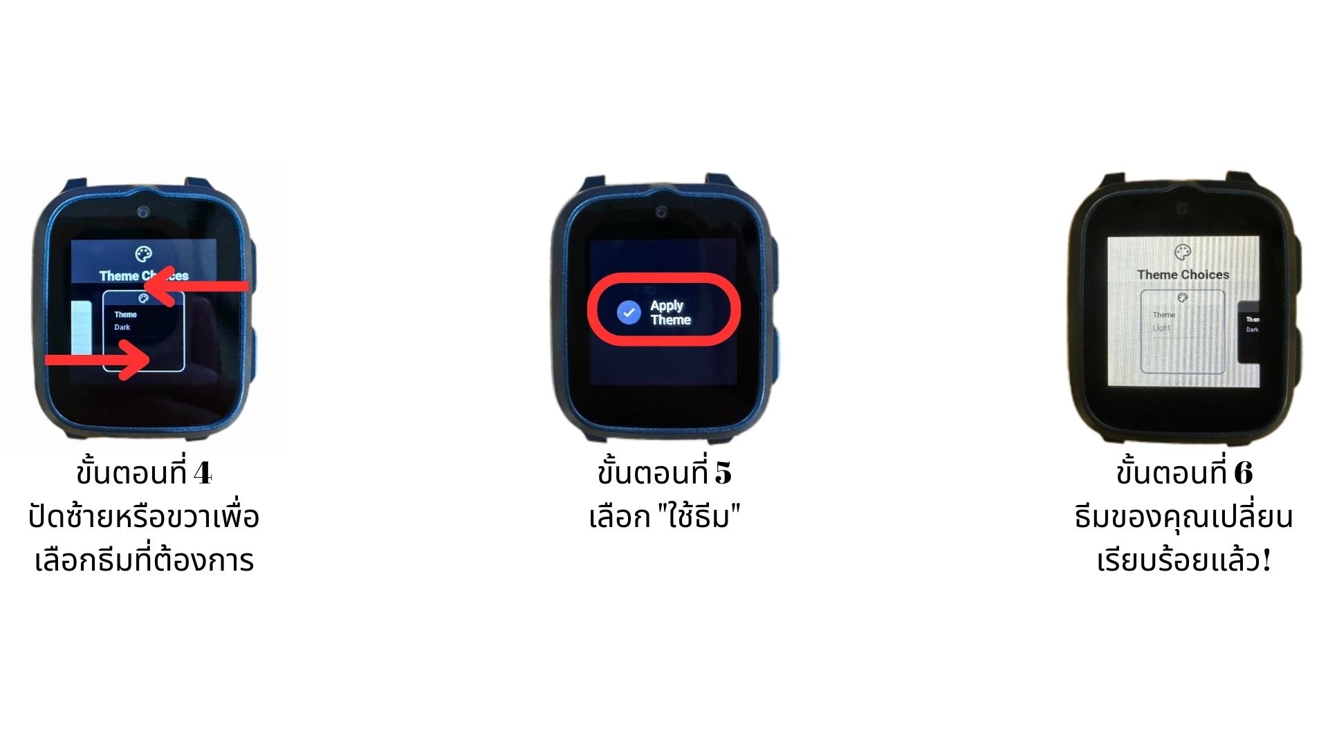 - ปัดซ้ายหรือขวาเพื่อเลือกธีมที่ต้องการ