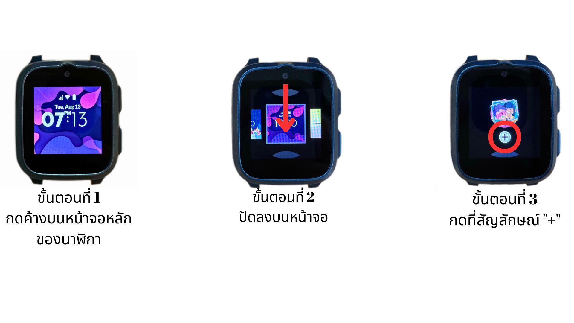 - กดค้างบนหน้าจอหลักของนาฬิกา