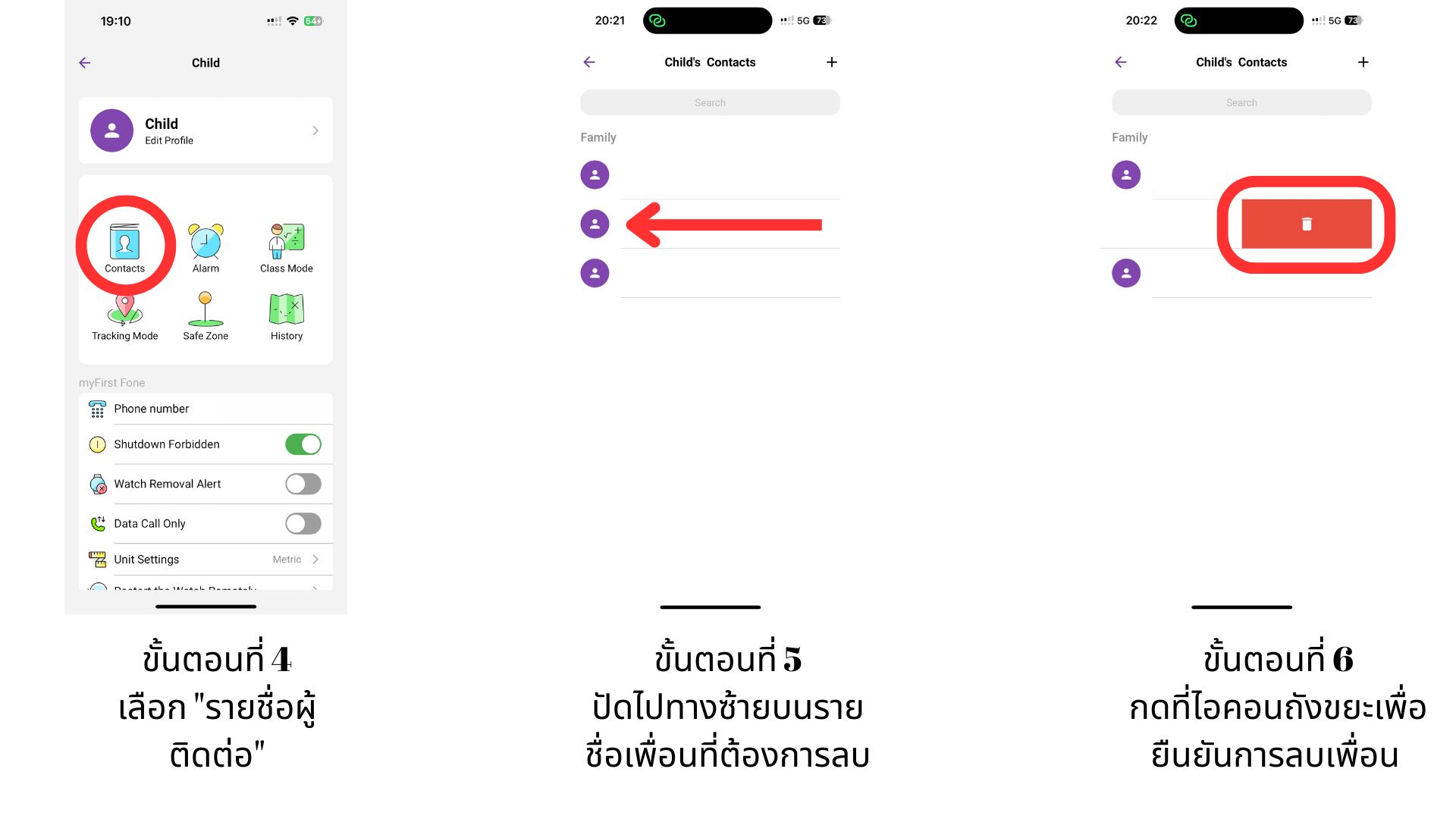 วิธีลบเพื่อนที่ลูกของคุณเพิ่มไว้ใน myFirst Fone S3c