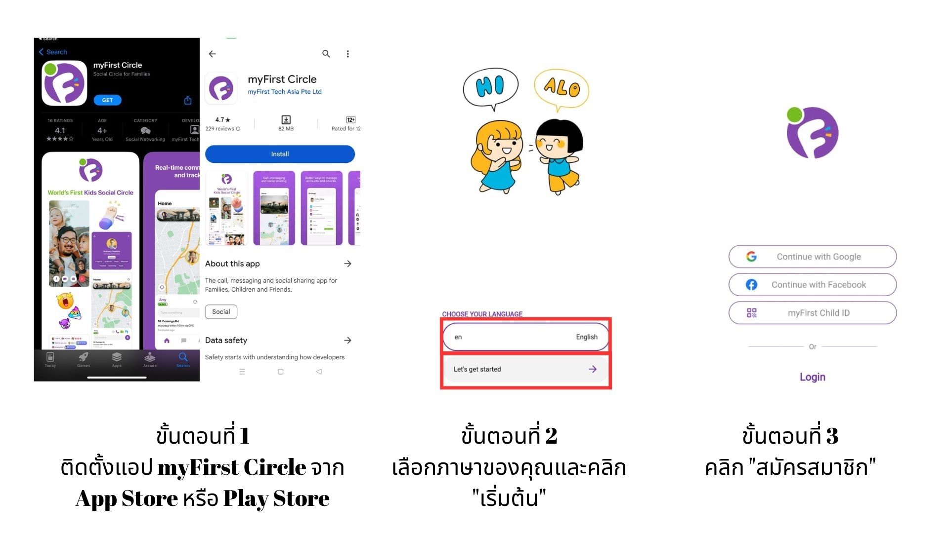 - ติดตั้งแอป myFirst Circle จาก App Store หรือ Play Store