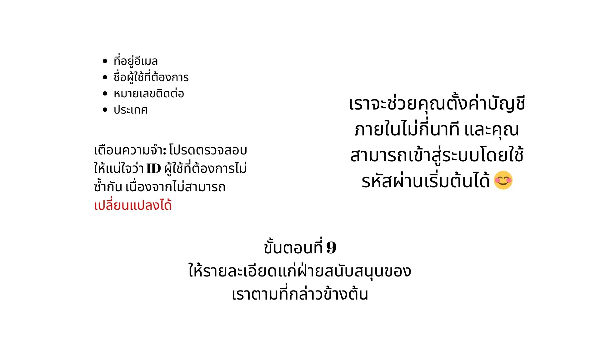 เราจะช่วยคุณตั้งค่าบัญชีภายในไม่กี่นาที และคุณสามารถเข้าสู่ระบบด้วยรหัสผ่านเริ่มต้นได้