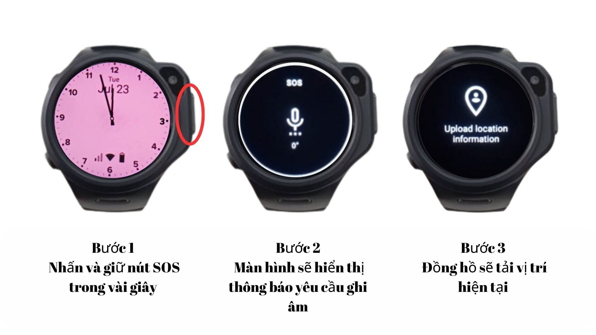 Đồng hồ sẽ tải vị trí hiện tại và gửi cảnh báo kèm ghi âm đến ứng dụng myFirst Circle của phụ huynh.