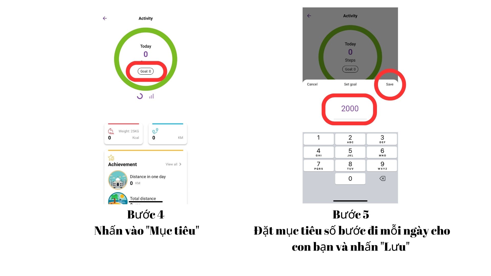 Thiết lập mục tiêu bước đi hàng ngày cho con bạn và nhấn "Lưu".