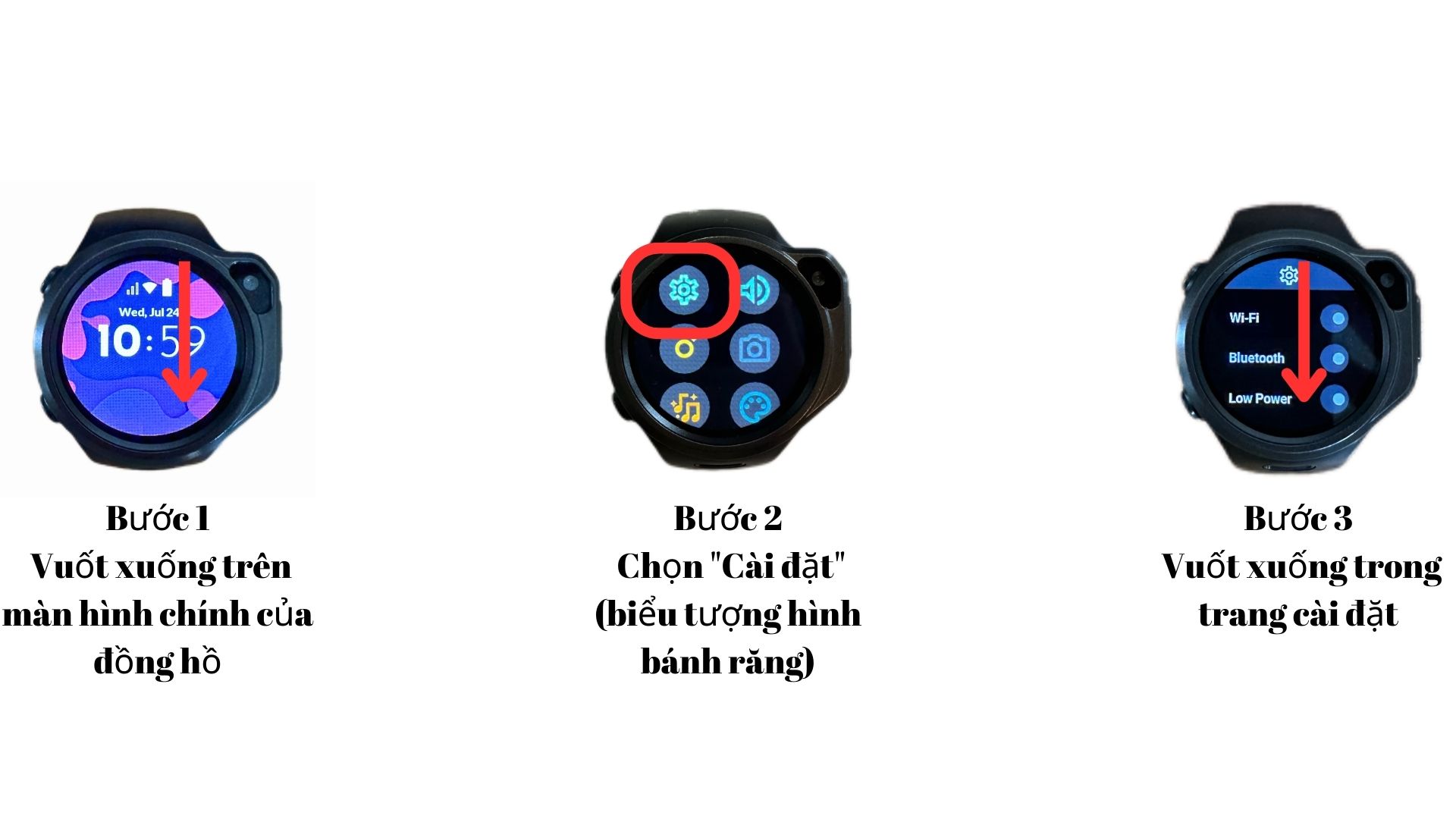Vuốt xuống trong trang cài đặt