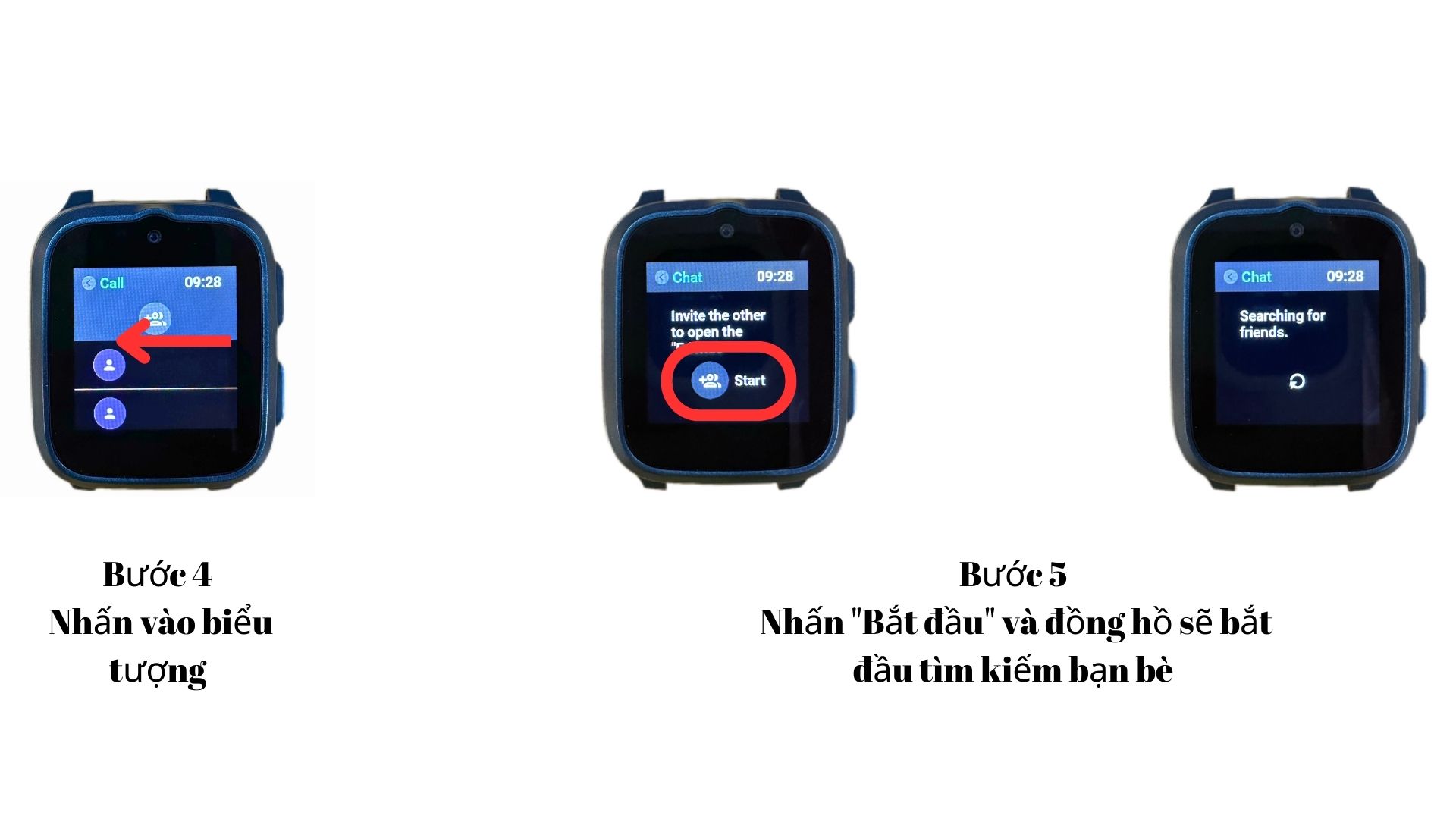 Nhấn "Bắt đầu" và đồng hồ sẽ bắt đầu tìm kiếm bạn bè