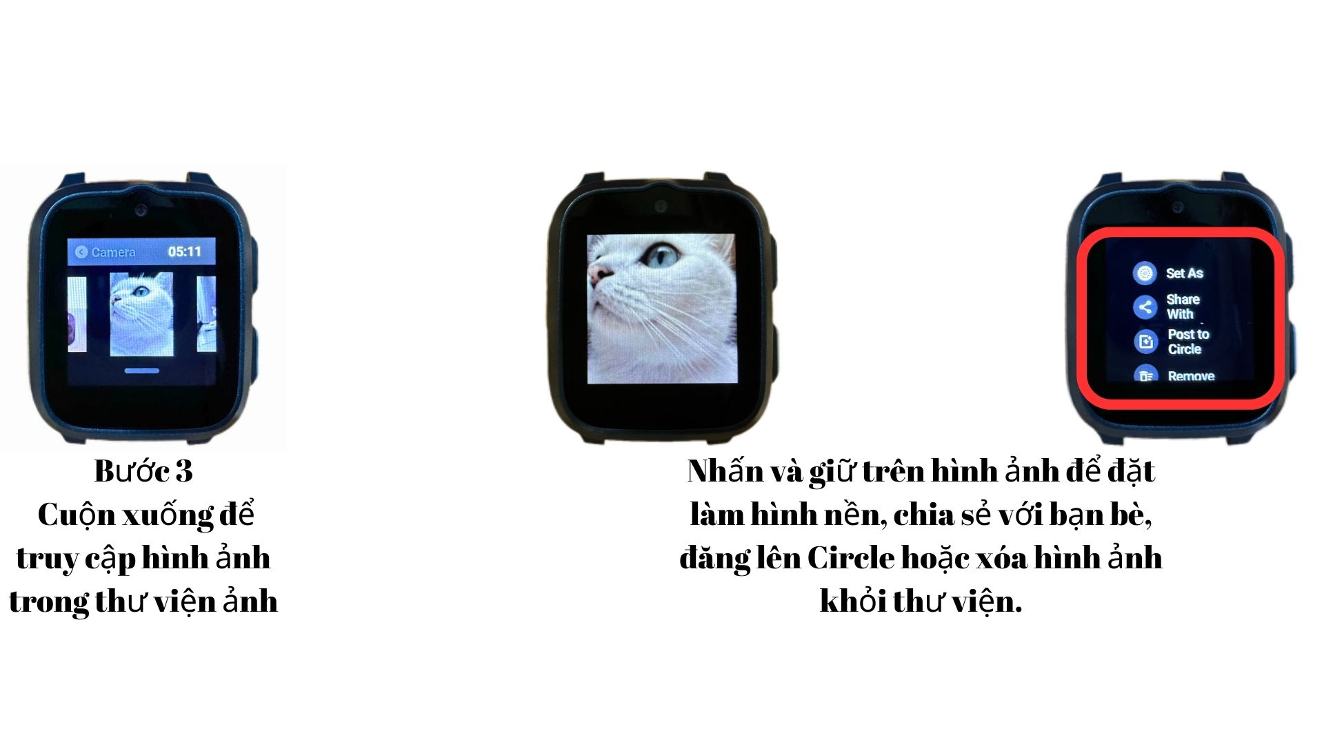 Nhấn vào ảnh và giữ sẽ cho phép bạn đặt ảnh làm hình nền, chia sẻ với bạn bè, đăng lên vòng tròn hoặc xóa ảnh khỏi thư viện.