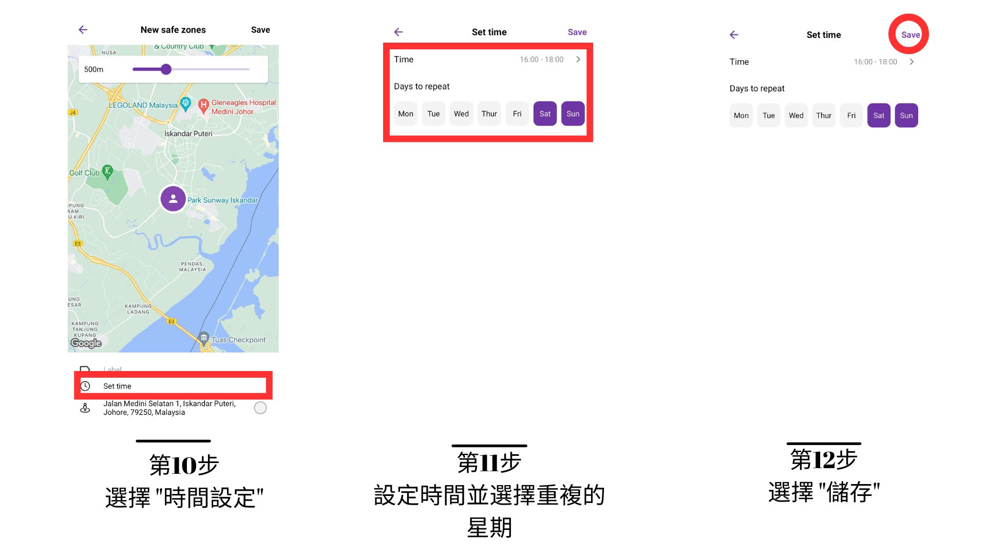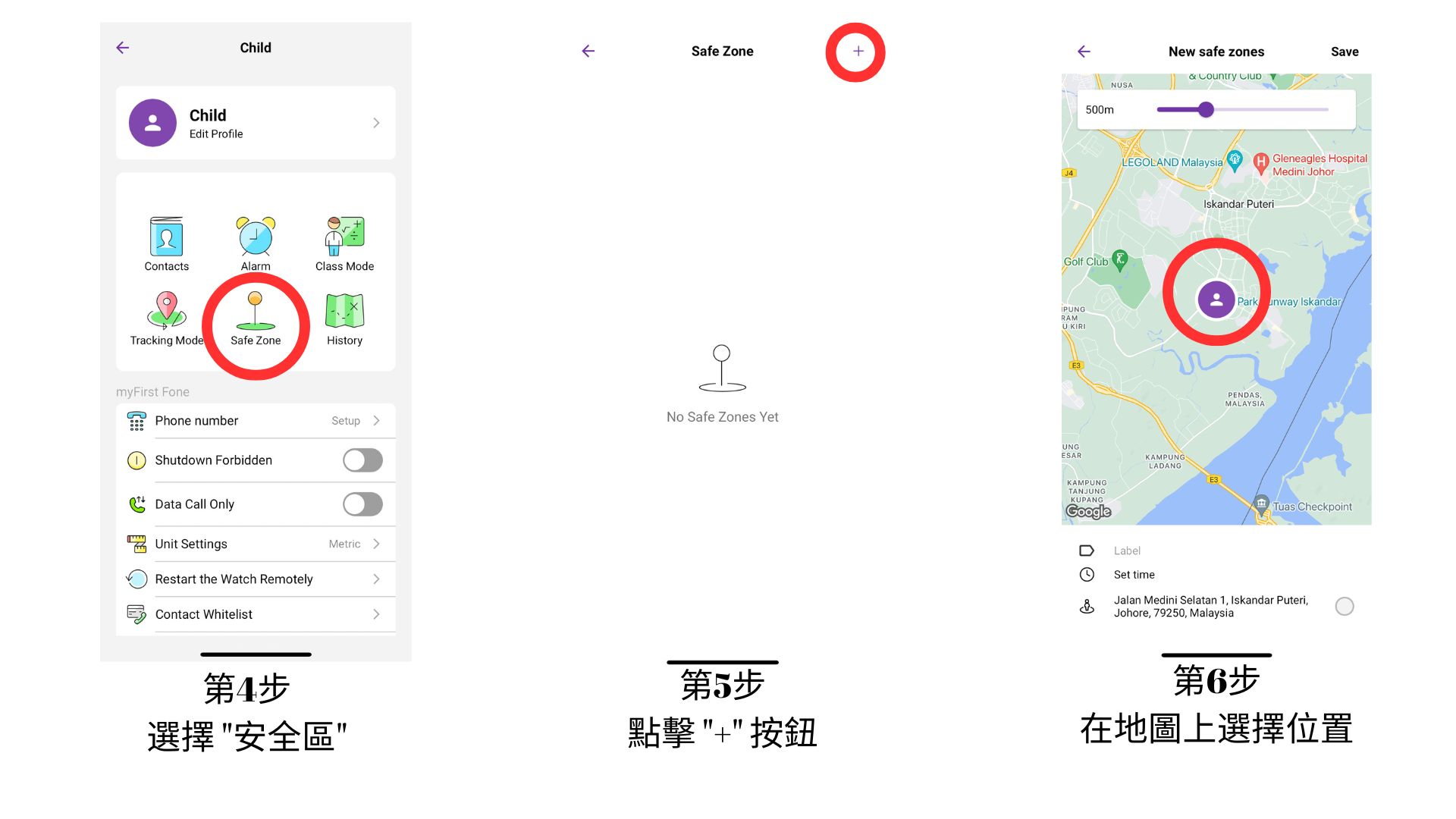 您可以通過 myFirst Circle 應用程式 設置安全區。請按照以下步驟操作:
