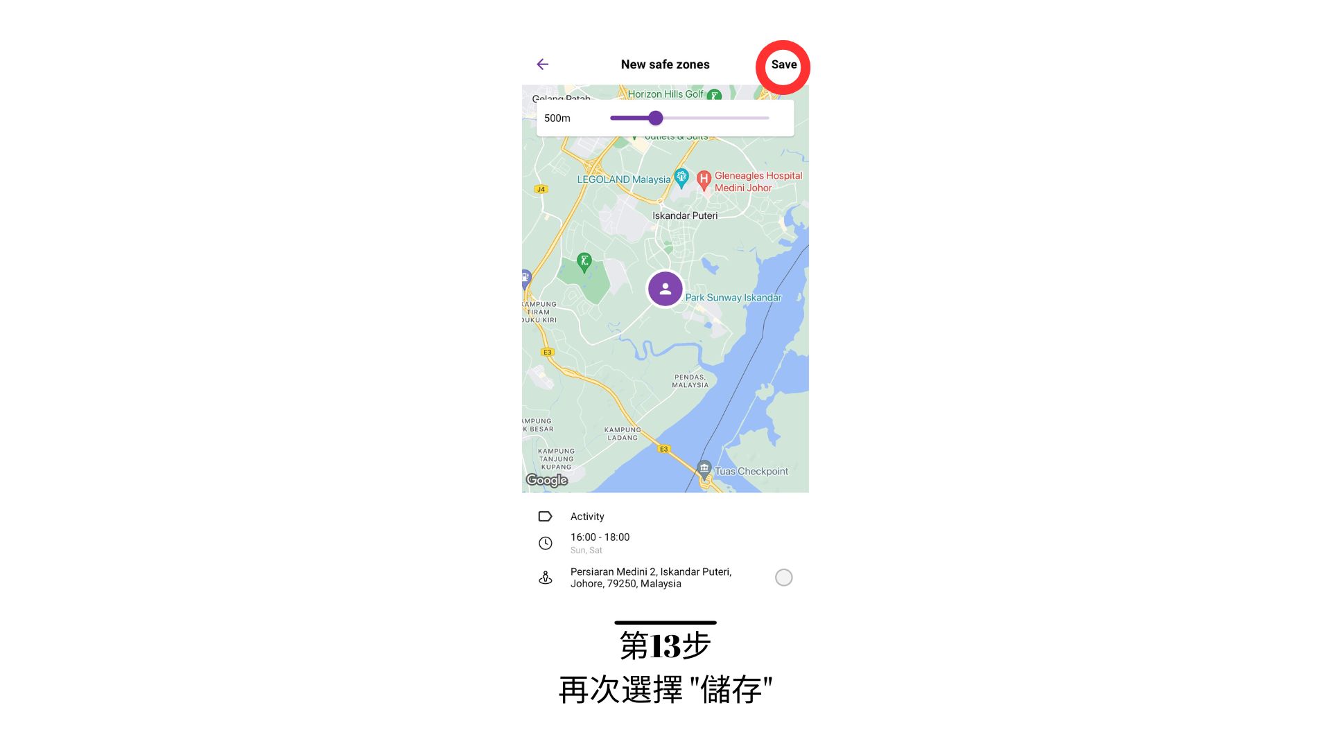 您可以通過 myFirst Circle 應用程式 設置安全區。請按照以下步驟操作: