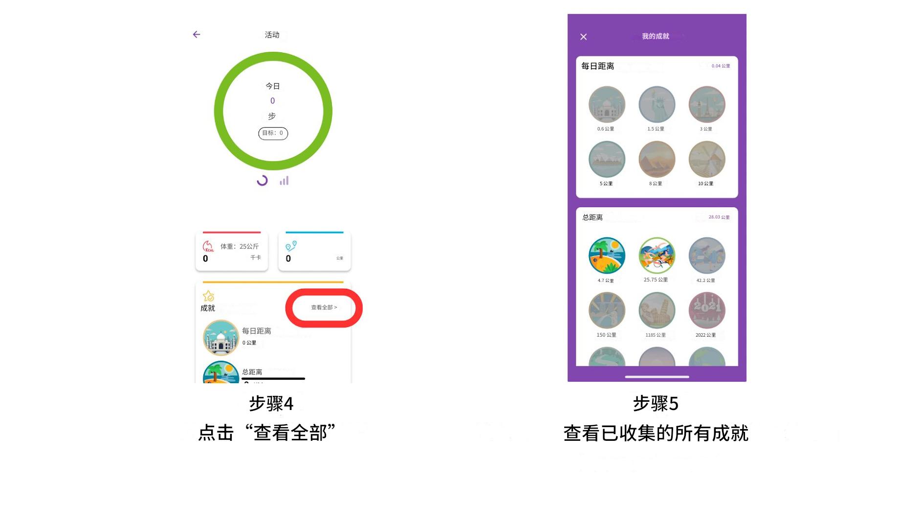 您还可以在家长手机上的 myFirst Circle 应用程序中查看累计步数。一旦达到每日目标,手表将显示“GOAL~”提示,并显示总步数及达成等级。