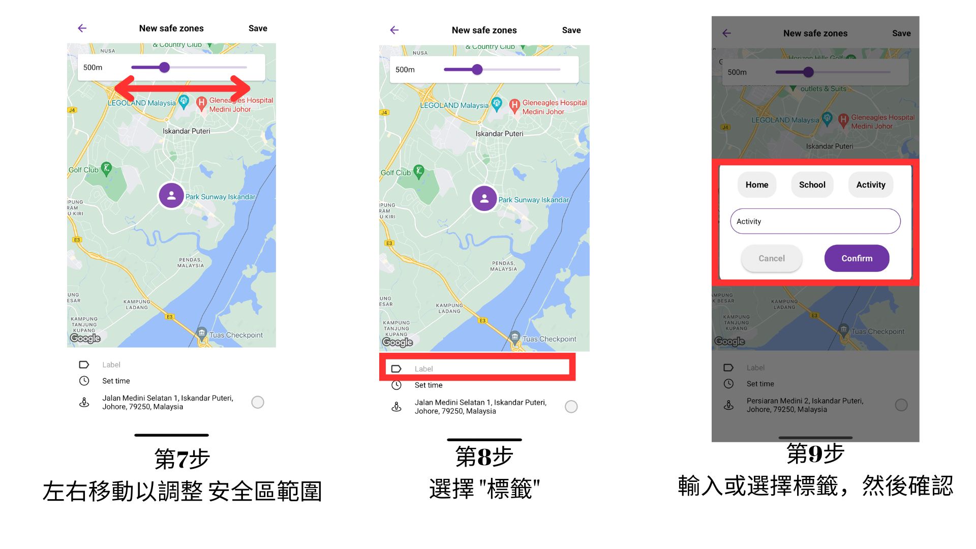 您可以通過 myFirst Circle 應用程式 設置安全區。請按照以下步驟操作: